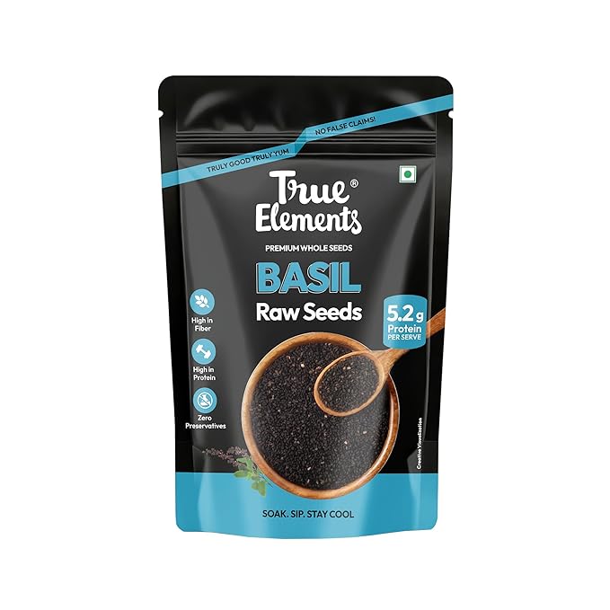 True Elements Basil Seeds 500g are a nutrition-focused option in the Top 5 Best Basil Seeds in India, offering high fiber, omega-3 fatty acids, and antioxidant support. These sabja seeds are particularly known for aiding weight management and improving skin health.