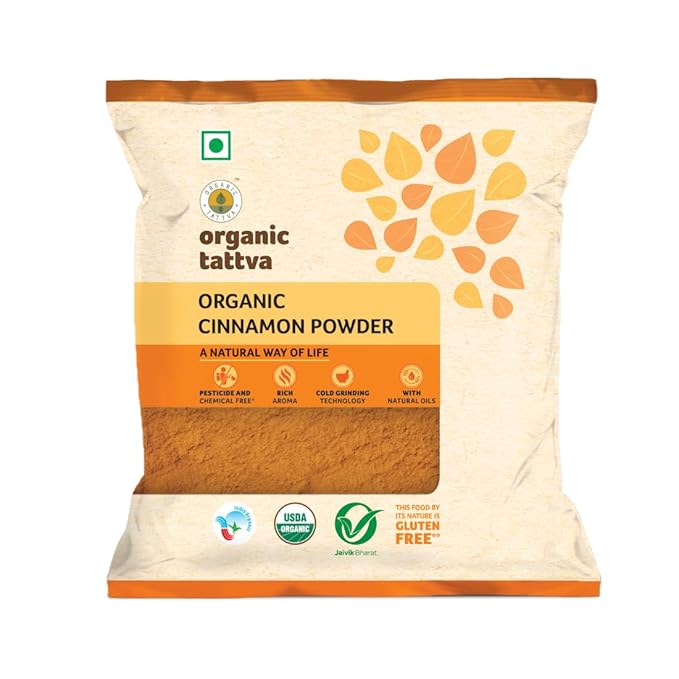 Organic Tattva Cinnamon Powder is one of the best organic cinnamon powders in India, known for its purity, rich flavor, and impressive nutrient profile. Certified organic and completely free from additives, this powder delivers the natural essence of dalchini without chemicals, preservatives, or artificial colors.