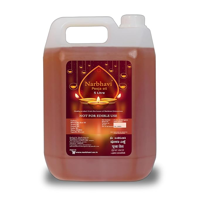 This oil produces a luminous flame and enhances spiritual ambiance, making it suitable for temples, festivals, and daily rituals. The large 5-litre pack ensures uninterrupted spiritual practice.