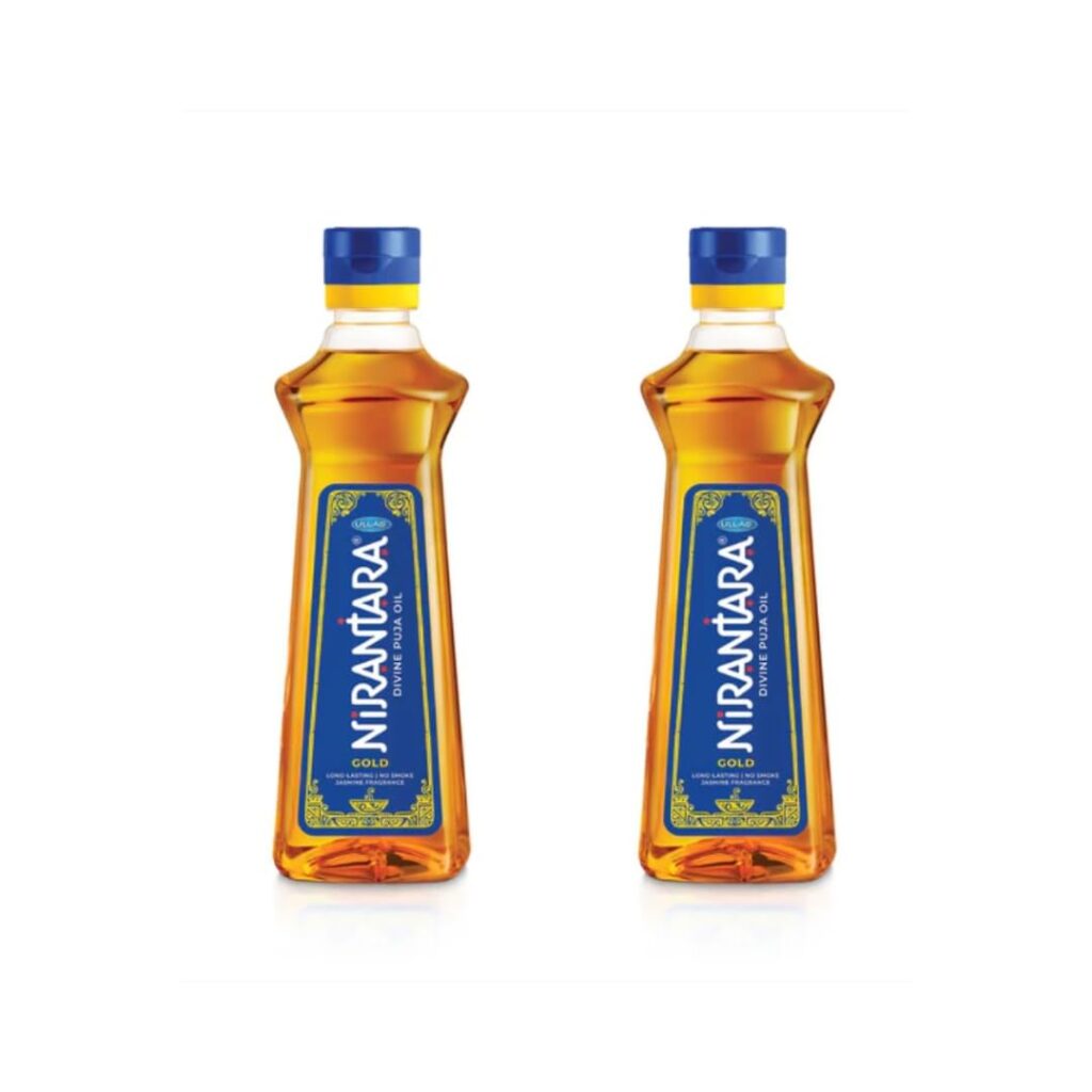 Nirantara Gold Divine Puja Oil is prepared strictly as per Shastric and Vedic traditions. It is free from palm oil and super olein oil, ensuring uncompromised purity.