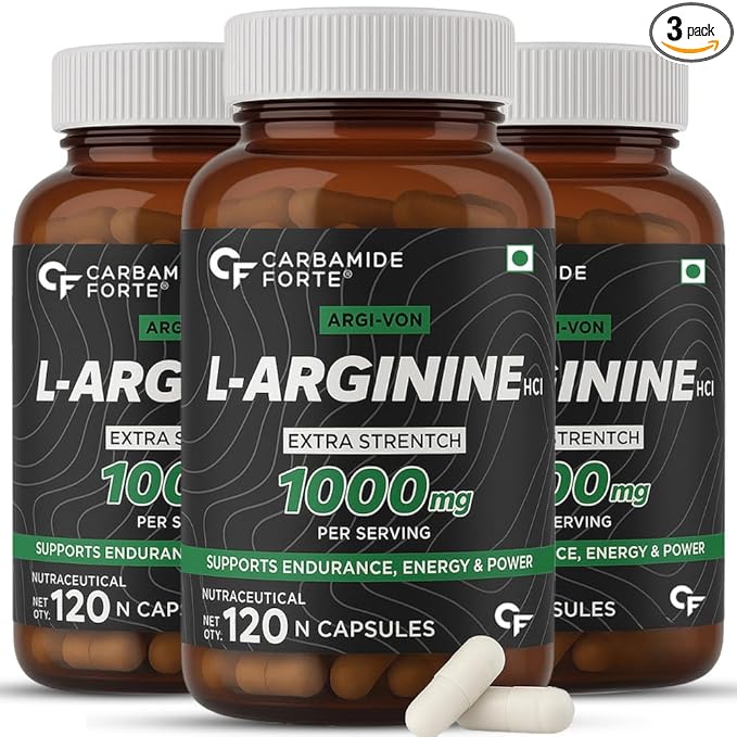 Carbamide Forte L-Arginine 1000mg Supplement Per Serving - 120 Veg Capsules (Pack of 3)