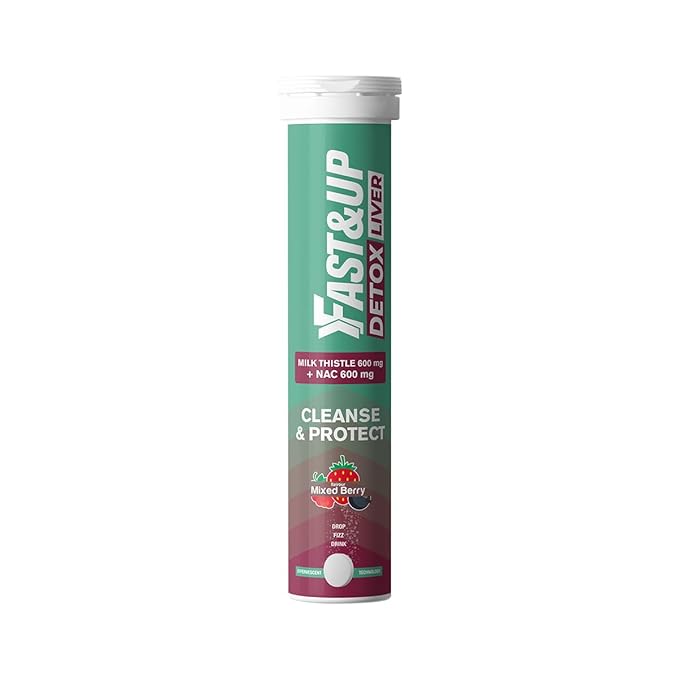 Fast&Up Liver Detox - Daily Liver Cleanser Drink | Milk Thistle + NAC | Helps Improve Digestion & Reduces Load on Liver - 20 Tablets - Mixed Berry Flavour
