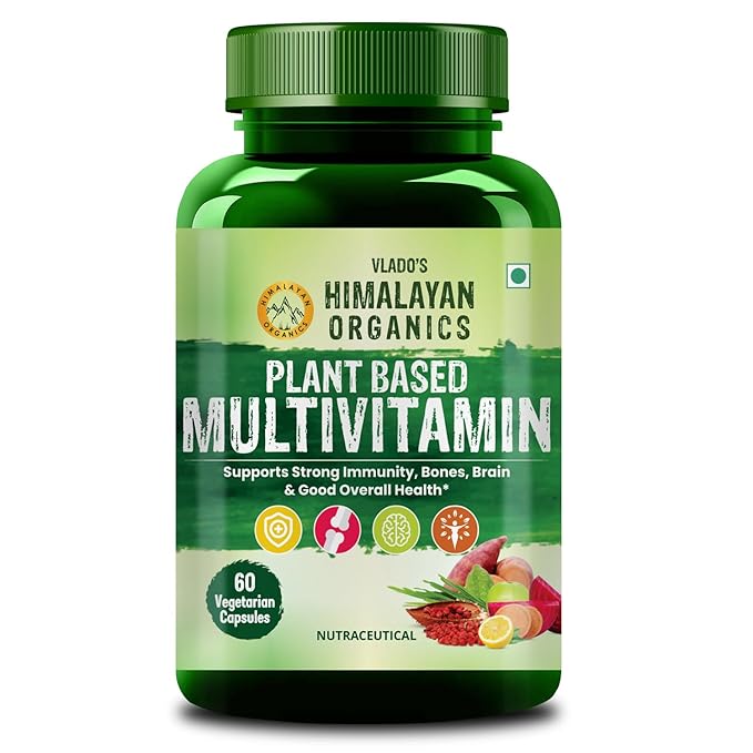 Vlado’s Himalayan Organics Plant Based Multivitamin Supplement stands tall among the Top 5 Best Multimineral Supplements in India due to its comprehensive, whole-food based formulation. Packed with 60+ ingredients, this supplement provides a powerful blend of vitamins, minerals, antioxidants, fruits, vegetables, and plant extracts.