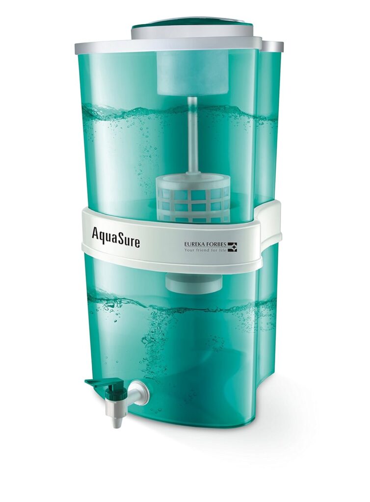 It’s ideal for households seeking a budget-friendly purifier that’s easy to clean and maintain. Prestige’s build quality and reliable gravity purification make it one of the best non-electric water purifiers in India in the mid-range segment.